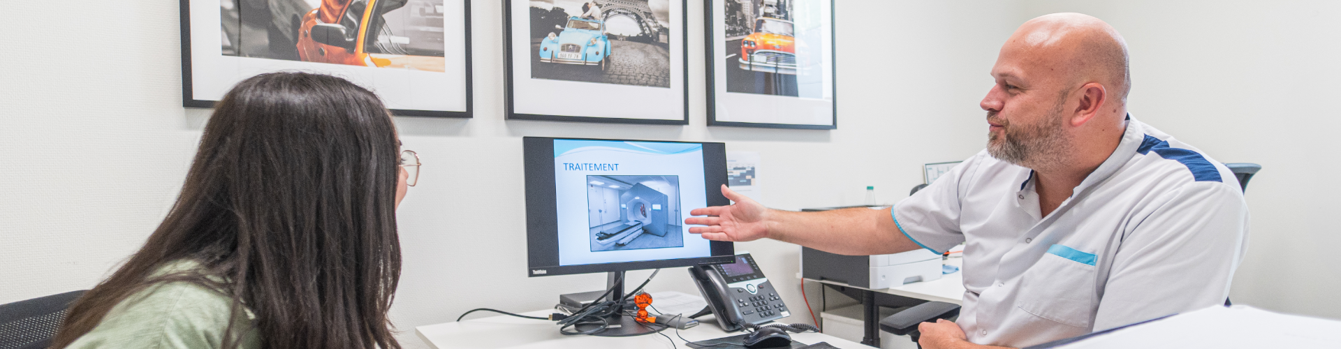Lors de cette première consultation, vous rencontrerez votre médecin radiothérapeute qui vous accompagnera tout au long de votre traitement et assurera également votre suivi après celui-ci.